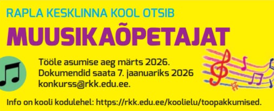 Otsime Rapla Kesklinna Kooli rõõmsameelset ning teotahtelist