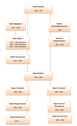 - 2018- seoses riigigümnaasiumi loomisega Raplasse muudeti kool põhikooliks ja nimetati ümber Rapla Kesklinna Kooliks