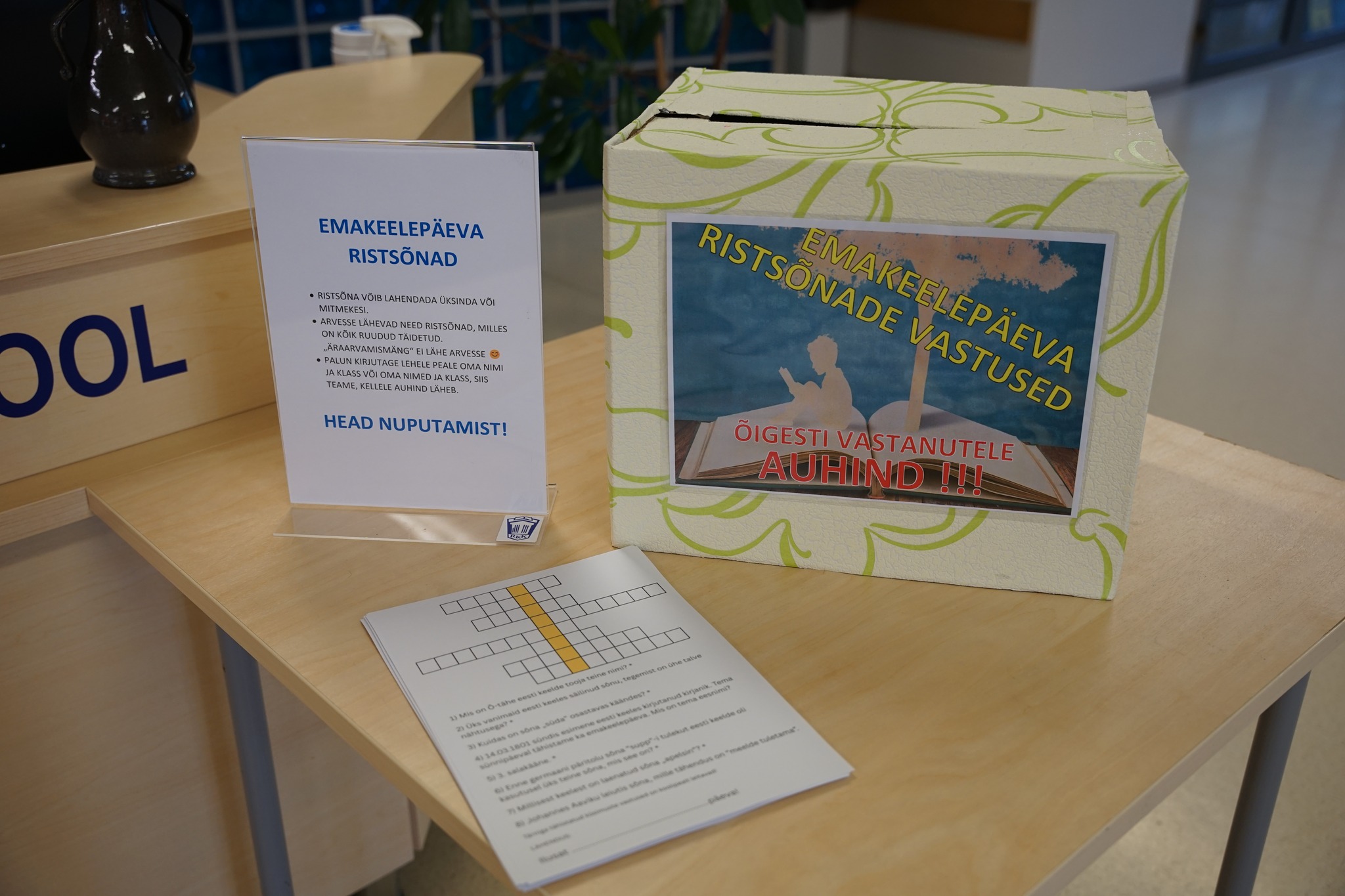 Õpilasesinduse õpilased koostasid emakeelepäeva tarvis ristsõna ja kahooti. Ristsõnade vastuseid oli seekord rekordarv. Seitsmele tublile saavad kätte toimetatud ka pisikesed auhinnad